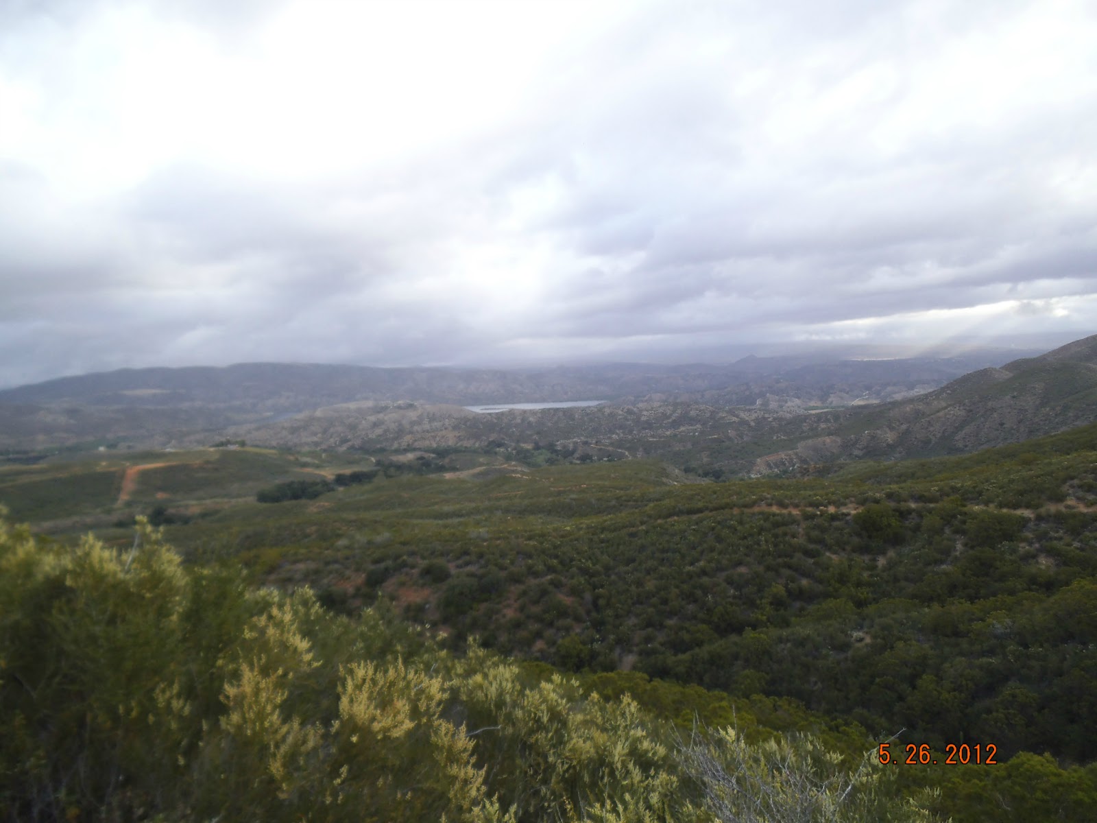 We are looking at Vail Lake to the North from a lower elevation. It’s a much prettier site higher up. The dark green spot is Dripping Springs camp ground where our cars are parked.